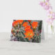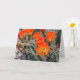 As flores do cacto do deserto cor de laranja claro são capturadas assim como uma abelha entrou na flor. A fotografia foi destacada com as palavras 'Parabéns' em um moderno roteiro manuscrito, mas essa arte pode ser apagada se você não quiser usar o cartão para um aniversário. O interior tem texto que também pode ser personalizado usando o modelo fácil e fornecido. Brilhante e alegre, este cartão seria excelente como um cartão para ficar bem, pensando em você, ou onde sua imaginação o levar.