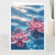 Cartão Flores de Lotus Rosa Flutuando em Água Azul Crista