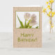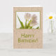 Este cartão de aniversário elegante apresenta uma fotografia de flores tulipas brancas dançantes. O fundo texturizado agrega interesse e variedade ao design.