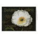 © Daphne Brissonnet/Apple selvagem. Uma imagem de uma flor branca na flor completa com suas haste e folhas. O jardim botânico das palavras escrito no ouro e em um fundo preto de rachamento pode igualmente ser visto na imagem.