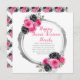 Cartão Flores Elegantes Rosa Quente e Silver Doce Dezesse