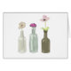 Cartão flores em garrafas de vidro. Pastel