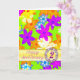 Um cartão de aniversário de casamento para dar àquele que você ama. Flores 'op art' fabulosas em cores vivas. Um cartão vibrante que diz 'FELIZ!'. As flores multicoloridas estão espalhadas num fundo verde. O cartão fica em branco para usar como cartão de notas ou para a sua mensagem. Veja toda a gama de cartões na minha loja. Todos os direitos autorais das obras de arte são de Norma Cornes.