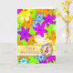 Um cartão de aniversário de casamento para dar àquele que você ama. Flores 'op art' fabulosas em cores vibrantes. Um cartão vibrante que diz 'Feliz!'. As flores multicoloridas estão espalhadas sobre um fundo verde. O cartão é deixado em branco para ser usado como cartão de nota ou para sua própria mensagem. Veja toda a gama de cartões na minha loja. Todos os direitos autorais da obra de arte por Norma Cornes.