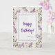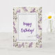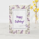 Padrão de flores lilás e uma armação costurada com fio de agulha e roxo para o aniversário. Todo texto pode ser editado.
