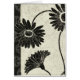 © Daphne Brissonnet/Apple selvagem. Três flores na flor completa, em preto e branco. A imagem tem um fundo modelado floral em uma máscara fora branca e o preto no lado esquerdo.