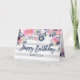 Cartão Flores rosa e Marinho | Stripes Feliz Aniversário