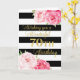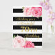 Feliz cartão de aniversário de 70 com flores cor-de-água rosa, listras pretas e verso atencioso.