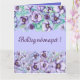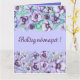 Bordas florais roxas com aspecto aquoso - grande cartão de saudação impresso por Alma Wad. Vem com o texto "Boldog Nevnapot!" que significa "Happy Name day" em húngaro.