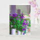 Prendendo flores roxas em uma varanda de casa em Oak Bluff no Vineyard de Martha. A Associação de Campinas do Vineyard da Martha (MVCMA), uma atração popular na ilha, abriga centenas de casacos vitorianos de gengibre. Oak Bluffs já foi conhecido como Cottage City. O Vineyard de Martha está localizado em Massachusetts, perto de Cape Cod.