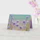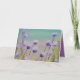 Esta é uma pintura que criei em Rockerbellas. Eu usei blues e pinks misturados para dar a ilusão de olhar para o mar. Com flores roxas no primeiro plano a piorar a grama. Este design faz um cartão de saudações florais tão bonito. Vazio esquerdo para adicionar sua própria mensagem.