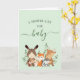 Personalize esta adorável e colorida floresta verde um presente chá para o cartão de bebê com suas próprias formulações, fácil e rapidamente. Este design ilustra as verduras rústicas de aquarelas, folhas de folhagem e adoráveis animais florestais: raposa, veado, esquilo, coelho, alce e guaxinim.