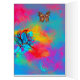 Design vibrante, elegante e artístico. Uma borboleta cintilante colorida com uma flor mágica, flores estilizadas e floridas.Pintura aquosa com papel dourado e folha prateada em cor azul-rosa, cor azul-rosa.. Belo cartão para o Natal, ocasiões especiais, Dia de as mães, aniversários, casamento e Dia de os namorados.