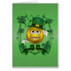 Um cartão bonito do divertimento. flynn afortunado. um smiley irlandês. está vestindo um chapéu verde e botas. é cercado pelo trevo afortunado de quatro folhas. se você gosta de sorrir então este cartão é para você. aperfeiçoe para o Dia de São Patrício