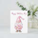 cartão fofo com um gnomo rosa de desenho animado a