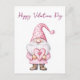 cartão fofo com um gnomo rosa de desenho animado apaixonado com um coração para o feriado de fevereiro no Dia dos Namorados