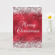 Crie seus próprios cartões de Natal elegantes. Cintilação prateada esparsa e placas gráficas digitais de folha de vidro vermelho brilhante. Todos os efeitos brilhantes, vívidos e brilhantes neste design de menina moderno são criados com gráficos digitais que impressão gostam de uma foto.