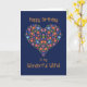 Um Cartão de Aniversário bonito para uma Mulher Maravilhosa, com um Padrão Floral em forma de Coração sobre um fundo Azul Profundo, inspirado pela Arte Folclórica da Europa Oriental. Parte da coleção Posh & Painterly 'Folk Heart'.