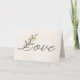 Texto LOVE em uma fonte elegante com folhas verdes em fundo de textura neutra suave para parabéns de aniversário