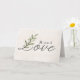 Texto LOVE em uma fonte elegante com folhas verdes em fundo de textura neutra suave para parabéns de 20 aniversário