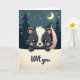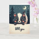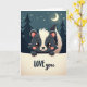 This design shows a cute skunk in soft grey, white, and black, peeking over a warm cream banner with a shy little smile. Its big dark eyes have tiny white sparkles, and there’s a touch of pink on its cheeks and inside its ears that makes it look extra sweet 🥰. The skunk’s small paws rest on the top edge of the banner, like it’s holding it up for you to read. Behind it is a deep teal-blue night sky with a pale crescent moon and scattered five-point stars, plus dark pine tree shapes along the top that hint at a quiet forest. The text says “LOVE you,” with “LOVE” in uppercase and “you” in lowercase, both in a friendly handwritten look, placed right in the center of the banner. It feels meaningful because it’s simple and tender, like a gentle way to say you care without making a big speech ❤️. It’s a sweet choice for a partner, close friend, or anyone you want to make feel seen and appreciated. Hope it helps you share your Valentine’s Day sentiments.