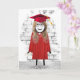 Garota bonita com cabelo louro longo, diploma de graduação, vestido vermelho, tênis e boné para parabéns formandos.