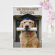 Um recuperador de ouros veste um boné de formatura e possui um diploma na boca, em frente a um prédio chamado "Escola Veterinária". O texto dentro pode ser alterado.