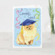 Felicite seu formando favorito com um presente que caracteriza um formando bonito, feliz de Pomeranian que veste um mortarboard entre uma agitação dos confetes.