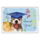 Envie obrigados para sua prenda de graduação com este design com um formando americano feliz e giro, Pit Bull Terrier, vestindo um quadro-mestra em meio a um monte de confete.