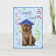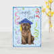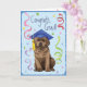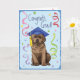 Felicite seu formando favorito com um presente que caracteriza um chocolate bonito, feliz labrador retriever graduado vestindo um mortarboard entre uma agitação dos confetes.