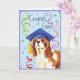 Felicite seu formando favorito com um presente que caracteriza um formando descuidado bonito do Spaniel de rei Charles que veste um mortarboard entre uma agitação dos confetes.