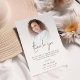 Formando Moderno De Sobreposição De Fotos Obrigado. Uma tipografia informal em preto para o título principal Obrigado complementando o resto do texto que você pode facilmente personalizar. Substitua a foto de exemplo pelo seu favorito.