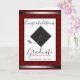 Folha de prata falsa com vinho e fundo listrado vermelho. Fontes bonitas e elegantes dizem "formando de parabéns" com fontes pequenas que podem ser excluídas ou dão espaço para adicionar o segundo grau e a data de graduação da classe. Dentro, o cartão é um texto ajustável com uma instrução de parabéns com opção de nome de script para o remetente. Gráfico de placa de massa na frente da placa criada por Valarie Wade no ilustrador. Todo o texto é ajustável.