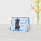 Envie obrigados para seu presente da graduação com este design que caracteriza labrador retriever preto bonito, feliz graduado vestindo um mortarboard entre uma agitação dos confetes.