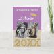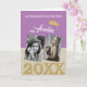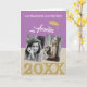 Cartão de Graduação de Parabéns Fotográficos Rústico Formando 2. Boné de formatura e texto na frente. Beige russo e fundo roxo. Adicione 2 fotos na frente - você pode adicionar fotos antes e depois. Adicione seu dentro de mensagem ou apague-o.