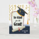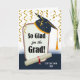 Parabéns na placa de saudação frontal personalizada de graduação. Adicione o nome do formando ao cobrir. Tema de celebração com galhardetes dourados e confete, diploma embrulhado, grafite em papel gráfico e boné de formatura de papelão. Arte, imagem e direitos de autor versos © Shoaff Ballanger Studios, 2022.