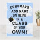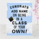 Parabéns criativos para qualquer graduado com senso de humor. Edite o texto para adicionar o nome do graduado e alterar o ano da turma.