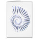 Um motif fóssil minimalista, gráfico e simples de amônia em azul e branco inspirado por um encontrado na costa Jurássica.