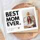 Celebre a incrível mãe na sua vida com este cartão com fotos de Dia de as mães "Melhor Mãe Nunca". Apresentando uma tipografia grande e ousada e um layout simples, este cartão captura perfeitamente o amor e a apreciação. Você pode personalizá-lo facilmente com sua foto favorita de você e sua mãe, fazer que seja uma manutenção realmente pessoal e memorável. Adicione seu nome e uma mensagem especial para torná-lo ainda mais significativo. Você também pode mudar a cor do texto e o coração. A design moderna e clássica a torna ideal para mães de todos os estilos. Quer você esteja dando ao lado de flores ou um presente pensativo, esta carta trará um sorriso para a cara dela. Mostre seu amor e gratidão de uma forma simples, mas significativa, este Dia de as mães. É um guardião que ela vai gostar para sempre.