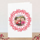Adicione a sua própria foto a este design de festas festivas nórdicas vermelho e branco. Faz uma família encantadora. Altere a mensagem e o nome para personalizar. Crédito da fotografia: Fotografia © Storytree Studios, Stanford, CA