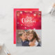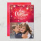 Luzes de Natal com fundo de um pinto e vermelho. Adicione sua própria foto e personalize para personalizar cartões de natal.
