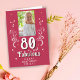 80 e Fabuloso 80 de Folhagem Magenta, Cartão com fotos de Aniversário. 80 e um texto fabuloso em um roteiro branco com um nome e uma folhagem branca num fundo magenta vívido. Personalize com sua foto, seu nome e a idade. Adicione o dentro de texto à placa ou apague-a.