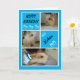 Envie os desejos de aniversário a um dono de coelho com este cartão azul de saudação de colagem de três fotos do Hoppy Birthday com nome personalizável.