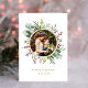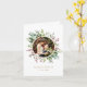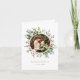 Este cartões de agradecimentos fotográfico apresenta cor d'água eucalipto, folhas verdes, bagas vermelhas, ramificações de pínus e uma falso estrutura em círculo dourado com dentro de texto opcional. Para personalização mais avançada deste design, clique no link "personalizar mais". Itens correspondentes também estão disponíveis.