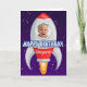 Um belo navio de foguete vermelho num fundo roxo estrelado. Personalize com seu nome infantil.