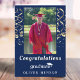 Cartão com fotos Dourado de Graduação de Parabéns Confetti. Script branco de tendência em um fundo azul marinho com confete ouro. Adicione a sua foto favorita e personalize-a com o nome do seu formando. Personalize o dentro de mensagem especial ou apague-o.