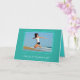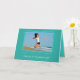 Obrigado de graduação - você tem uma placa com modelo de foto na frente. Personalize o texto em dois locais em cartões verdes azuis e lacrimosos com um quadro de linha moderno em torno da foto. A dentro é azul aqua brilhante com texto impresso preto para personalizar com uma mensagem obrigado-você. Este cartão também vem em tamanho menor.
