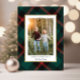 Cartão Foto de Natal de Xadrez Vermelha e Verde dobrada