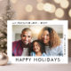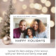 Um cartão de saudação dobrado de Natal moderno que mostra sua foto na frente e "Feliz feriado", "Que seus dias sejam Feliz + Brilho" e seu nome em uma simples tipografia. No dentro, personalize sua saudação e adicione seus primeiros nomes.