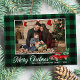 Um belo estilo rústico, xadrez verde - cartão de férias tartan com um caminhão vermelho-máquina carregado com árvores, com roteiro de caligrafia "Feliz Natal", seu nome familiar, ano ou outro texto e sua foto de família. Personalize sua mensagem na parte traseira do cartão para o toque perfeito.